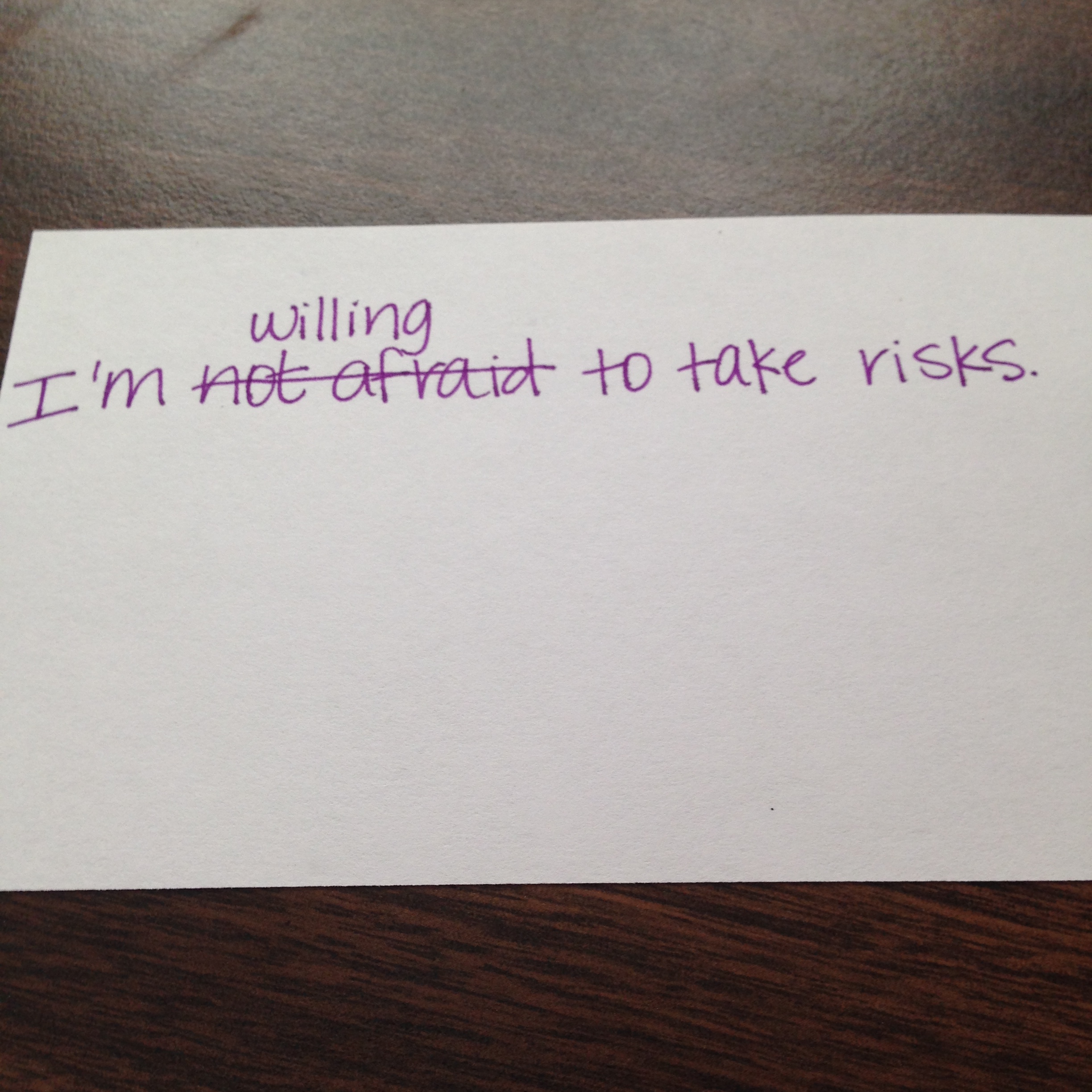 I am running for an office in my Chorale. As part of the process, there is a short written application. On one of my responses I wrote, “I’m not afraid to take risks” . . . then I put my pen down and reconsidered. I crossed out “not afraid” and wrote “willing” above it.